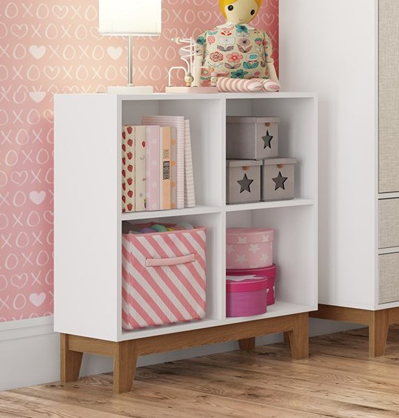 Estantería de 6 divisiones práctica y versátil para la habitación de los niños, ayuda en la organización del ambiente y también en la decoración.