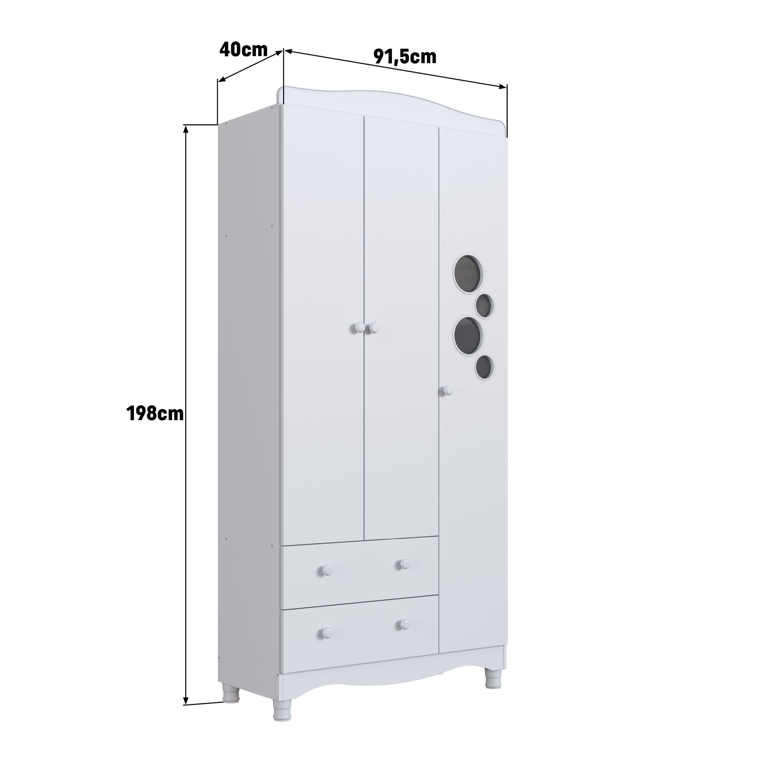 Ropero 3 puertas y dos cajones blanco, presenta un aspecto clásico y atemporal que organizará de manera práctica la habitación de los niños, ayuda en la organización del ambiente y también en la decoración.