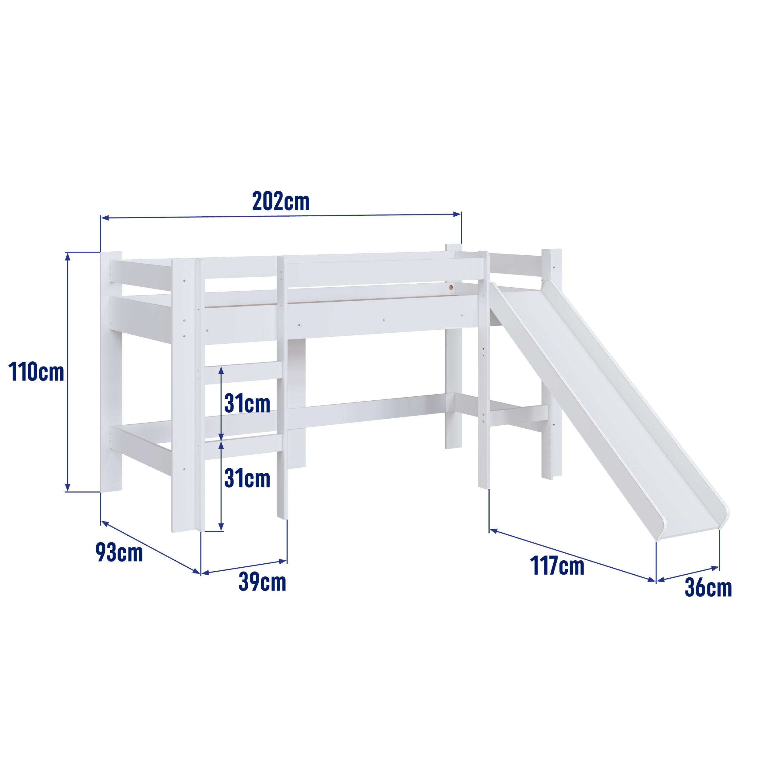 -Ancho: 93 cm sin contar tobogán, contando el mismo la medida sería 210 cm