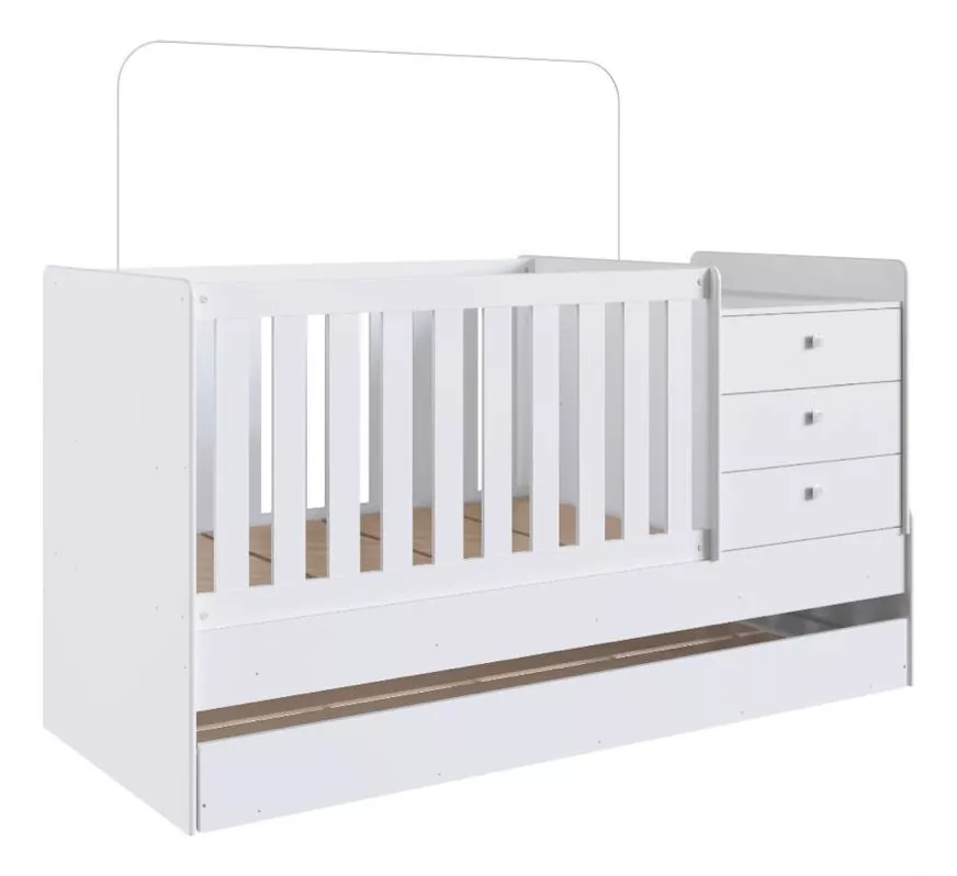 -Cambiador que tiene 3 cajones, con rieles metálicos que soportan hasta 3 kg cada uno. Luego este pasa a ser utilizado como mesa de luz.