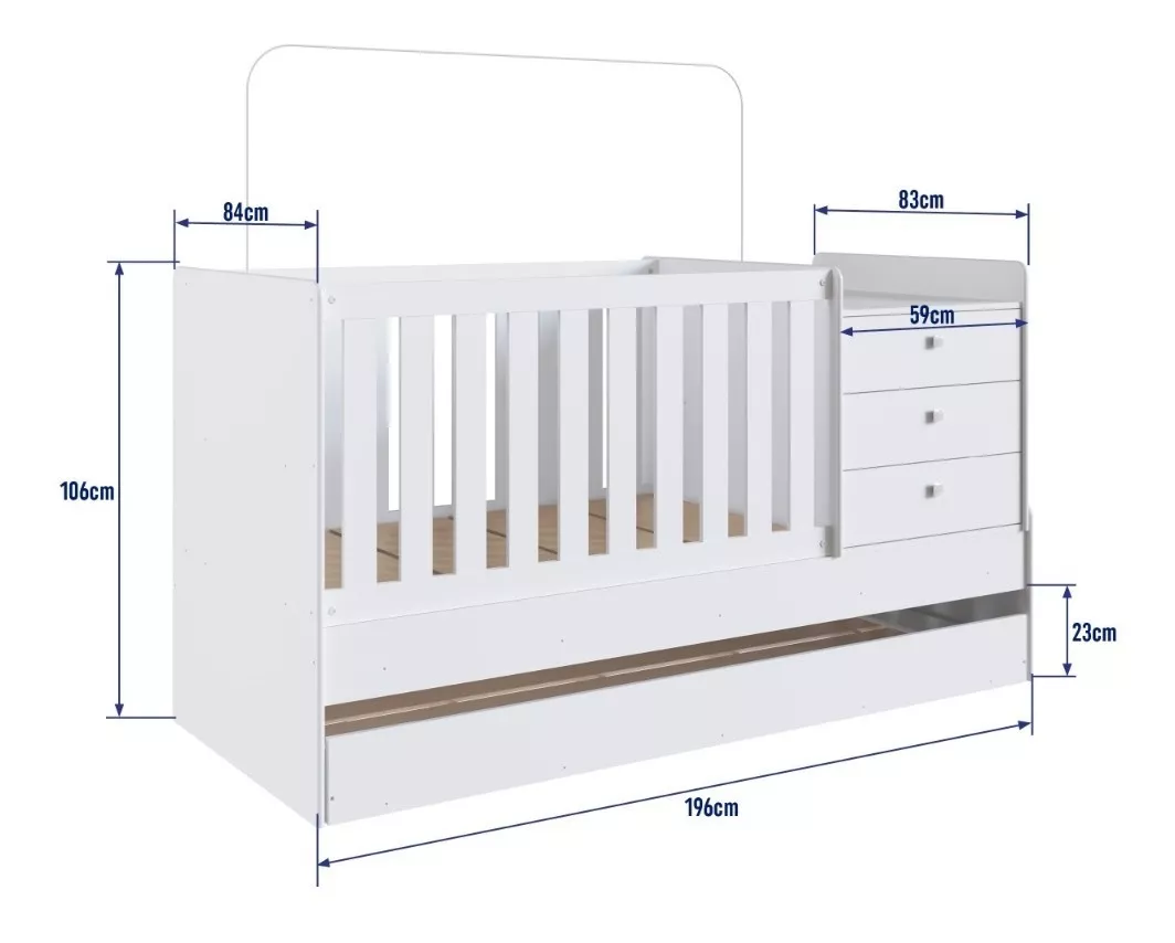 -Colchón indicado: 130*70 cm para cuna y 188*78 para cama (accesorio no incluido)