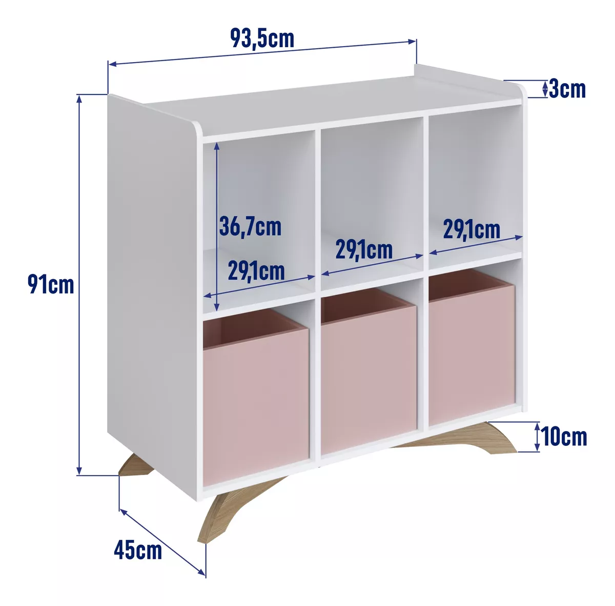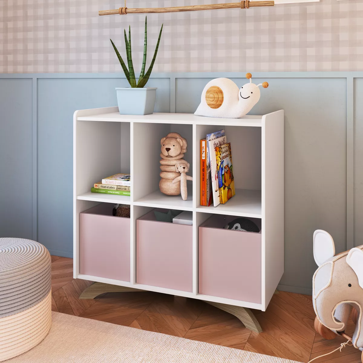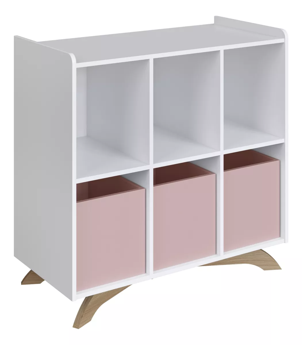 Estantería infantil de diseño moderno y funcional, perfecta para organizar libros, juguetes y accesorios. Su estructura resistente y su estilo suave y decorativo aportan orden y calidez al dormitorio infantil, fomentando un espacio práctico y armonioso.