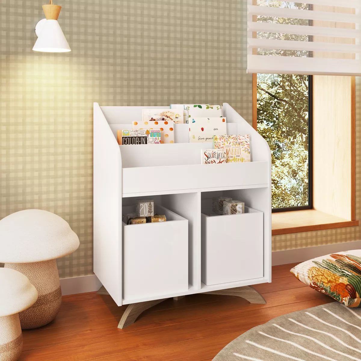 Estantería librero con 2 boxes y tres niveles para libros o juegos, de diseño clásico y atemporal, ideal para organizar de forma práctica la habitación de los niños, aportando orden y sumando valor decorativo al ambiente.